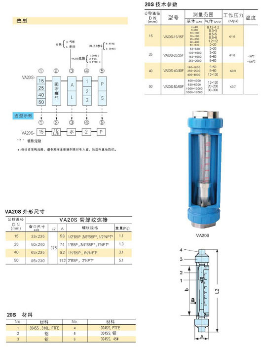 | 流量儀表 >> 玻璃管轉(zhuǎn)子流量計(jì) >> VA20S玻璃轉(zhuǎn)子流量計(jì) |