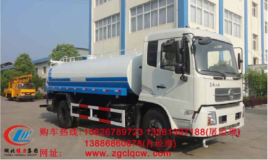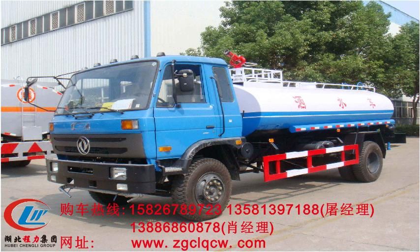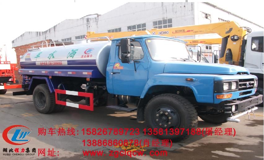 東風(fēng)平頭145、153運(yùn)水車(罐體容積10000--15000L)東風(fēng)康明斯170馬力、190柴油發(fā)動機(jī)和廣西玉柴160馬力、180馬力柴油發(fā)動機(jī),9.00-20輪胎,帶方向助力,帶增壓、斷汽剎,5檔變速箱,3.6噸前橋,9噸后橋,整車外形尺寸:長×寬×高(mm)8350×2470×3050,總質(zhì)量(kg):16000,額定質(zhì)量(kg):,8000整備質(zhì)量(kg):7805,該車罐體有效容積:10噸-15噸,該車帶國家免征公告!