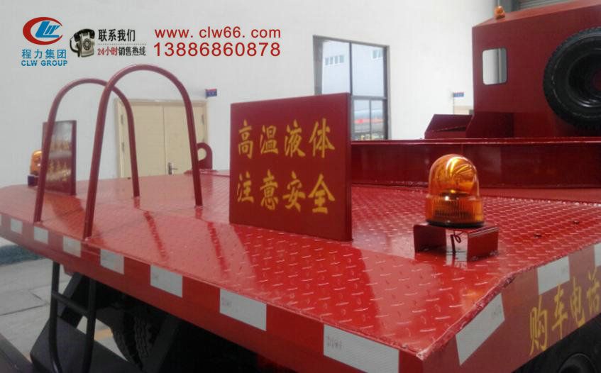 該車標(biāo)配變速箱檢查蓋,方便維修及保養(yǎng),帶裝沙槽,帶備胎,11.00-20鋼絲胎。高低檔變速箱,發(fā)動機240馬力,起步穩(wěn),更安全。電瓶及油箱頂部均帶防護罩帶隔熱功能,底板帶抬包部分前、后板為Q235花紋板(起防滑作用),中間及四個掛鉤支撐點為14mm板,底板帶50MM厚巖棉隔熱層,四個加強掛鉤,承重部分用加強槽鋼構(gòu)架,貼反光條,抬包圈做活動的用螺絲固定方便拆卸、移動,,該車前部帶裝沙槽,后部帶警示牌,車輛左右各一個爆閃警示燈。