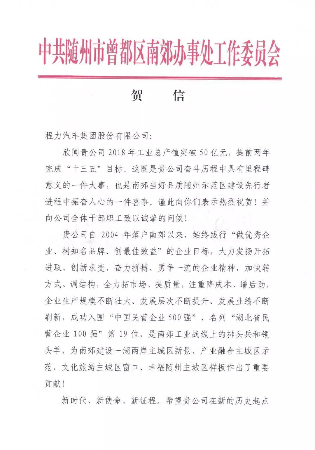 這不是一張簡(jiǎn)單的賀信,這是一份擔(dān)當(dāng)和責(zé)任,更是一種智慧和實(shí)力的展現(xiàn)。程力專(zhuān)用汽車(chē)股份有限公司從2015不到20億元,到2017年突破36億元,程力專(zhuān)用汽車(chē)股份有限公司用2年時(shí)間基本實(shí)現(xiàn)產(chǎn)值翻番,而過(guò)去的2018年,程力人在新經(jīng)濟(jì)、新常態(tài)下,實(shí)現(xiàn)逆勢(shì)穩(wěn)步增長(zhǎng)華麗轉(zhuǎn)身,提前2年完成了“十三五”制定的目標(biāo),確實(shí)可圈可點(diǎn),值得思索點(diǎn)贊;同時(shí),這也是一份期待已久驚喜和祝福,更是一份鞭策與鼓勵(lì)。